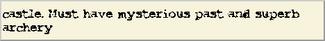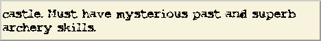 castle. Must have mysterious past and superh